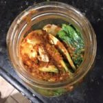• If not using fermentation tools, add a weight on top of the veggies which will keep the contents beneath the brine.The goal is to keep veggies submerged under brine during fermentation.