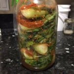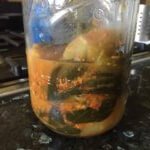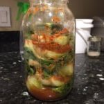 • Remove weight and lids and transfer to a jar with a tightly closing lid. Store in refrigerator. Enjoy within 1-2 months.