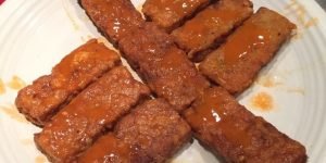 I was determined to make tempeh taste like SOMETHING?!! Buffalo-style, battered in egg & sprouted flour, fried in coconut oil, and finished with pastured butter and hot sauce. It worked! …