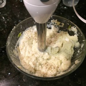This is a simple, low carb recipe for cauliflower mash, made with milk kefir to give it a slightly tangy flavor and a probiotic boost.