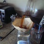 - Filter coffee into another container through a paper coffee filter to remove any sediments. Pour back into jar/vessel.