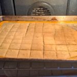 - After another 15 to 20 minutes, When the crackers are golden brown, remove from oven. Break up into squares. Let cool and crisp up. Store in an airtight container in a cool dry place.