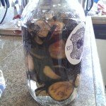 - Add slices to the brine. Cover with a plastic lid or plate and weigh down (I use a wine bottle filled with water) so that the contents stay under the brine. Leave for up to 4 hours.
