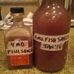 So I decided to begin with a simple fermented fish sauce. I certainly use fish sauce quite often in cooking and when making dishes like kimchi, so I thought, “what kind of Fermenter would I be if I used store-bought fermented sauce?!” I based my first attempt on the simple and short-time recipe in Sally Fallon’s Nourishing Traditions cookbook (yes, I am one of those kooky WAPF‘ers). Then upon further experimentation, I gradually began making a more traditional Thai or Vietnamese style sauce (fermenting up to a year).