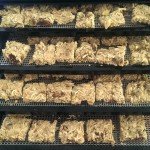 - At this point, you may flip the pieces over so they dry/cook evenly on both sides, and/or transfer the entire sheet onto the plastic mesh tray insert (which will work support the semi-solid granola) by "flipping" the entire sheet over onto the mesh tray. This will ensure more even dehydration.