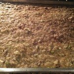 - Pour mixture into center of sheet pan and spread out evenly. It should create a layer about 1/2 inch thick.