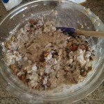 - Add nuts/seeds, dried fruit and coconut shreds to soaked oats.