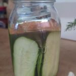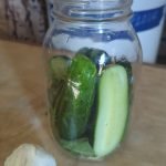 - Add cucumbers to jar, packing tightly.