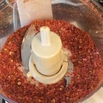 A few summers ago, I planted lots of pepperoncini plants with the hopes of making lots of pickled peppers. As it turns out, they’re not that great for fermenting. (They’re better quick pickled, dare we admit!) So I let the fruits (normally picked when green) get very ripe on the plant, then picked them slowly until I had enough to make a batch of kimchi powder.
