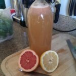 After the primary fermentation, flavoring and bottling (aka the secondary fermentation) is when you can really get creative with your ‘booch! You can use any combination of fresh fruit, fruit juice, veggies, ginger or other herbs and spices. Remember: a little goes a long way, but you should still play around with the quantities needed to achieve the desired level of sweetness or strength. Some ingredients will lend more carbonation. To maximize carbonation, keep the bottles within the range of 76-80F. An inexpensive seedling mat (affiliate link) used in gardening works great– it’s waterproof and can give you the few extra degrees you need when it’s cold in your room.