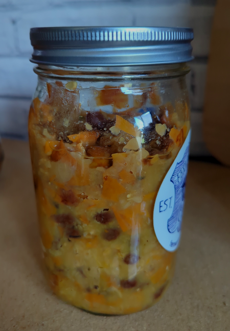 - Add honey, vinegar/brine, lemon juice/kombucha to a wide-mouth quart-sized mason jar.