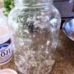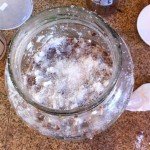 - Spritz, sprinkle, or spray filtered water on the bottom and inside walls of the fermenting jar/vessel, then sprinkle some of the reserved salt on the bottom and sides so that an even layer of salt sticks to the bottom and insides of the jar.