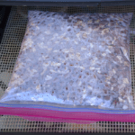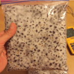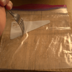- Punch holes every 1/2 to 3/4 inch (1 to 2cm) into both sides of either two 1-quart/liter or one 1‐gallon/4 liter zip‐top bag (you are creating air holes for the tempeh to breathe.)