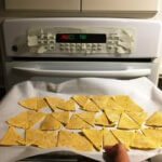 - Lay chips head-to-tail in a single layer on two half-sheet pans lined with silicone mats or parchment paper.