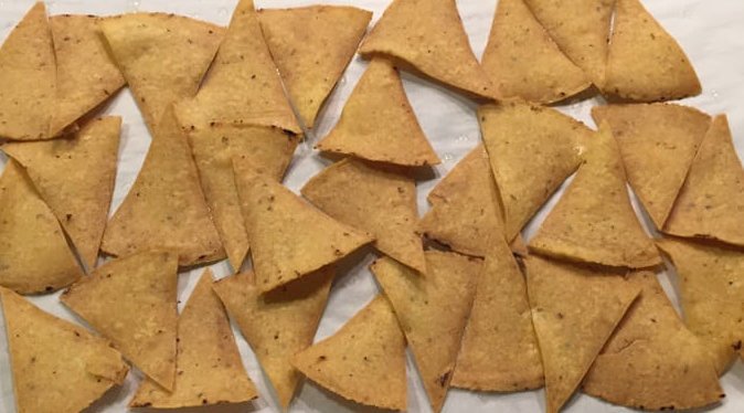 Feeling frustrated by the lack of snack chips fried in healthy fats (like olive oil, coconut or avocado oil, ghee, or animal fats like lard, tallow, or schmaltz), I crafted a technique and recipe for homemade baked tortilla chips that are as good as any fried version. They’re better in fact, as you’re no longer ingesting rancid, omega-6/PUFA laden, über-processed “vegetable” (actually seed) oils (such as sunflower, corn, safflower, or canola) in which just about every chip on the market is fried! (To be fair, there are numerous potato chip brands that are now fried in healthy fats. But I’ve seldom found tortilla chips made with those).
