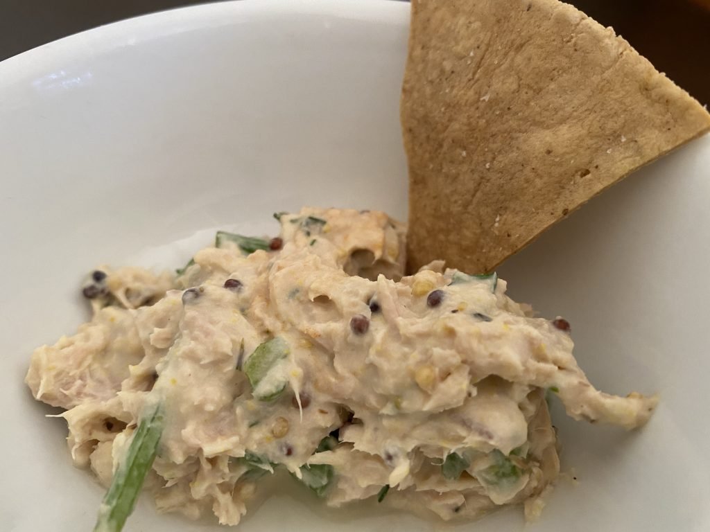 - Add all ingredients to bowl and mix well, breaking up chunks of tuna.