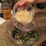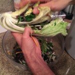 - Remove thick stems from greens, and chop the leaves into ¼" strips.